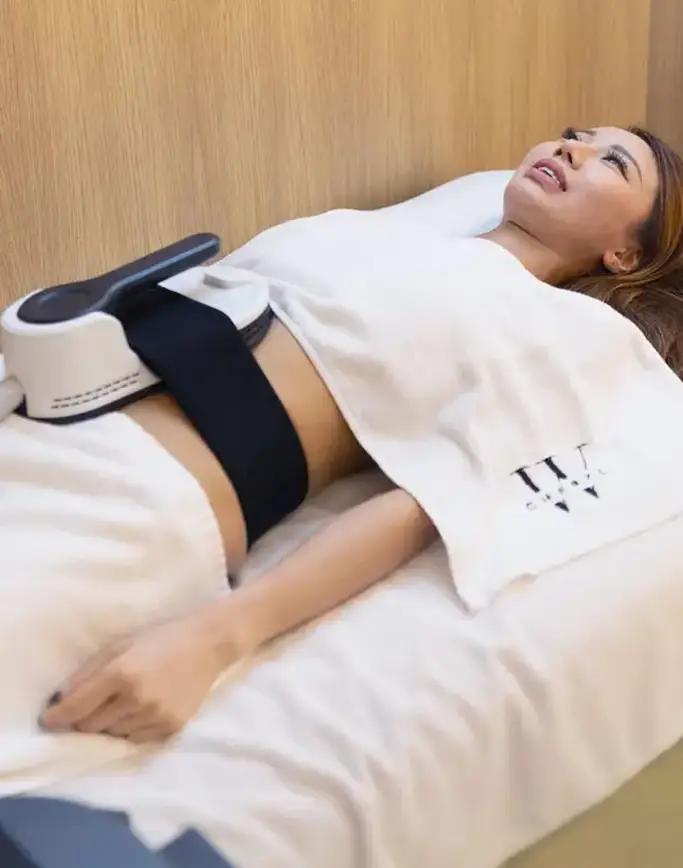 Cheryl W WonderSculpt Treatment is a 2-in-1 slimming and sculpting treatment that combines HIFEM + Advanced RF technologies to tighten muscles and eliminate fat cells. HIFEM helps to induce the muscles with continuous high-frequency contractions and stimulate muscle tissue growth, whereas Advanced RF helps to burn stubborn fat cells in the body.