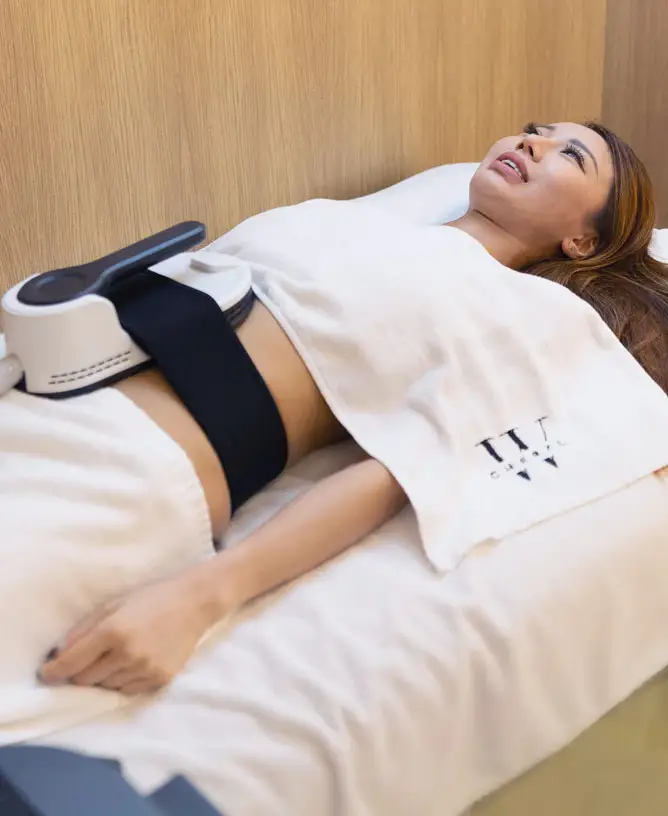 Cheryl W WonderSculpt Treatment is a 2-in-1 slimming and sculpting treatment that combines HIFEM + Advanced RF technologies to tighten muscles and eliminate fat cells. HIFEM helps to induce the muscles with continuous high-frequency contractions and stimulate muscle tissue growth, whereas Advanced RF helps to burn stubborn fat cells in the body.