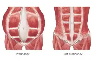 • Diastasis recti (abdominal muscle separation) weakens your core.